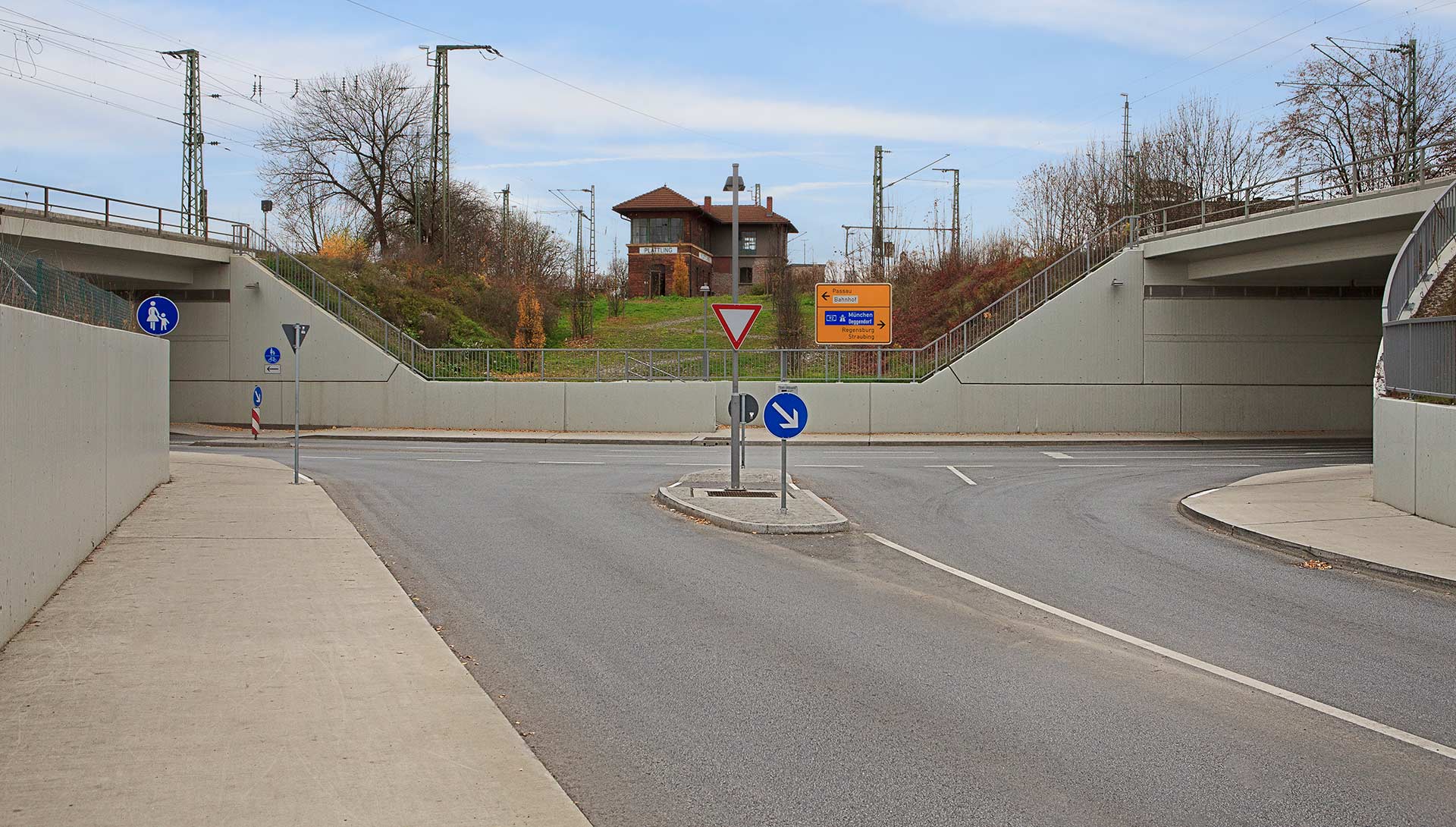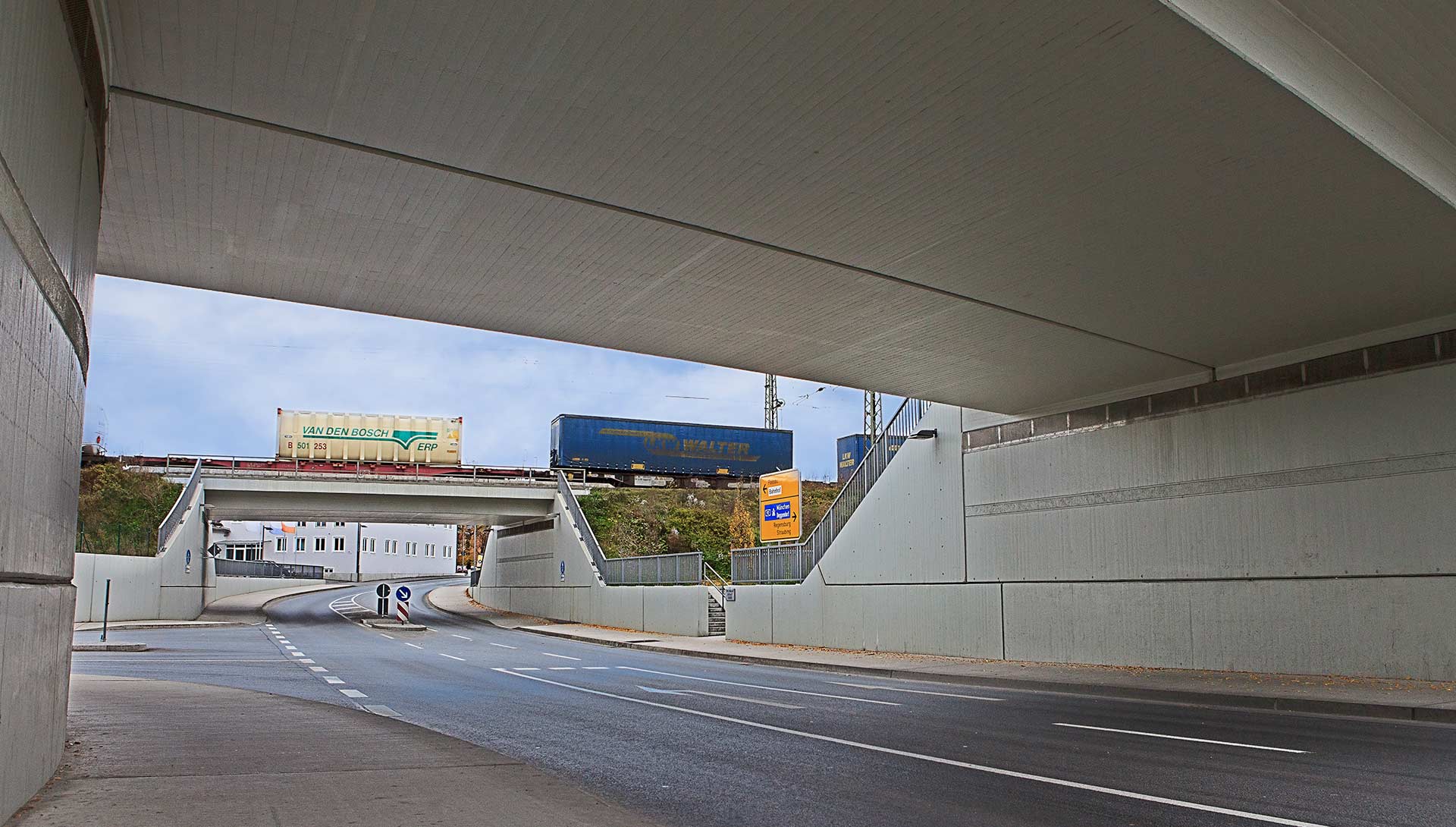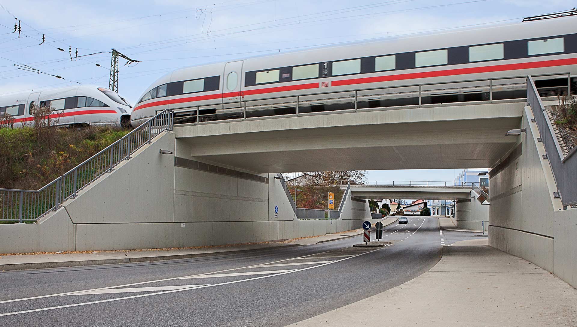 Bauzeitliche Sicherung des bestehenden Bahndammes und der Brückengründungsbauteile unter laufendem Verkehr