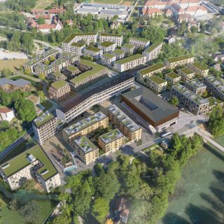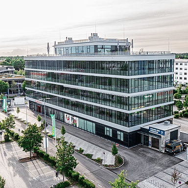 große verglaste Fassadenflächen in Kombination mit Lärchenholzverschalung