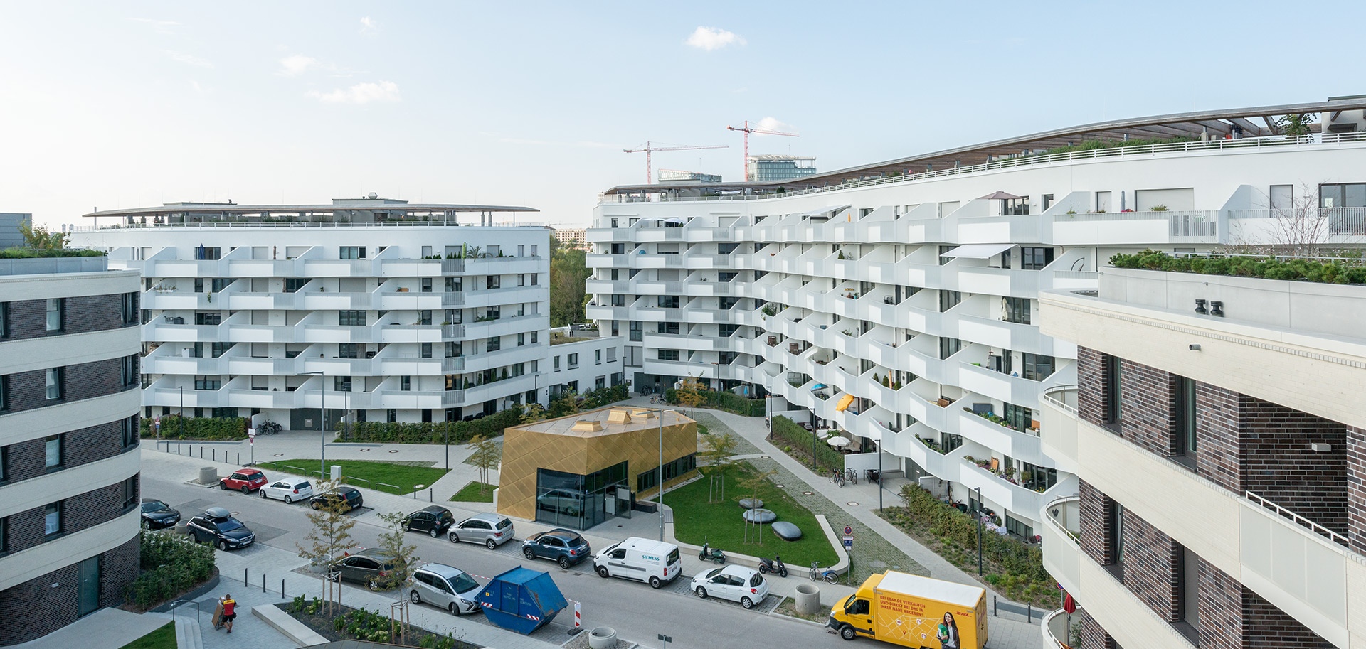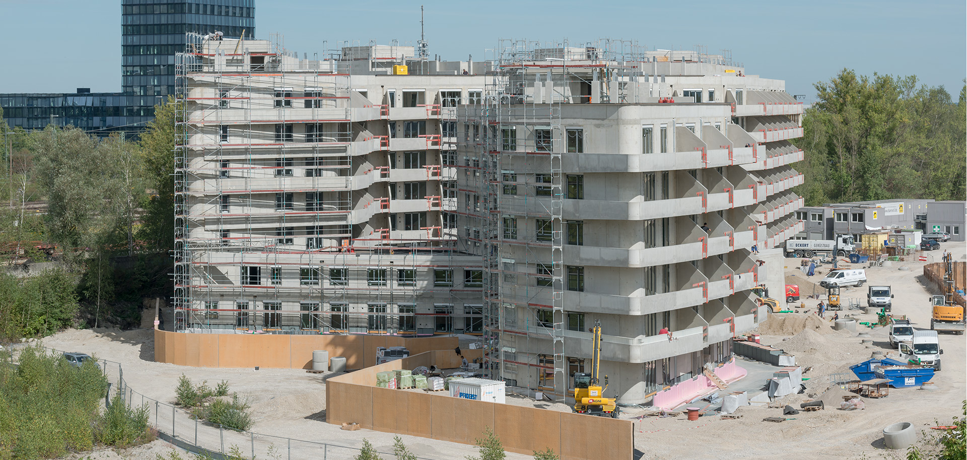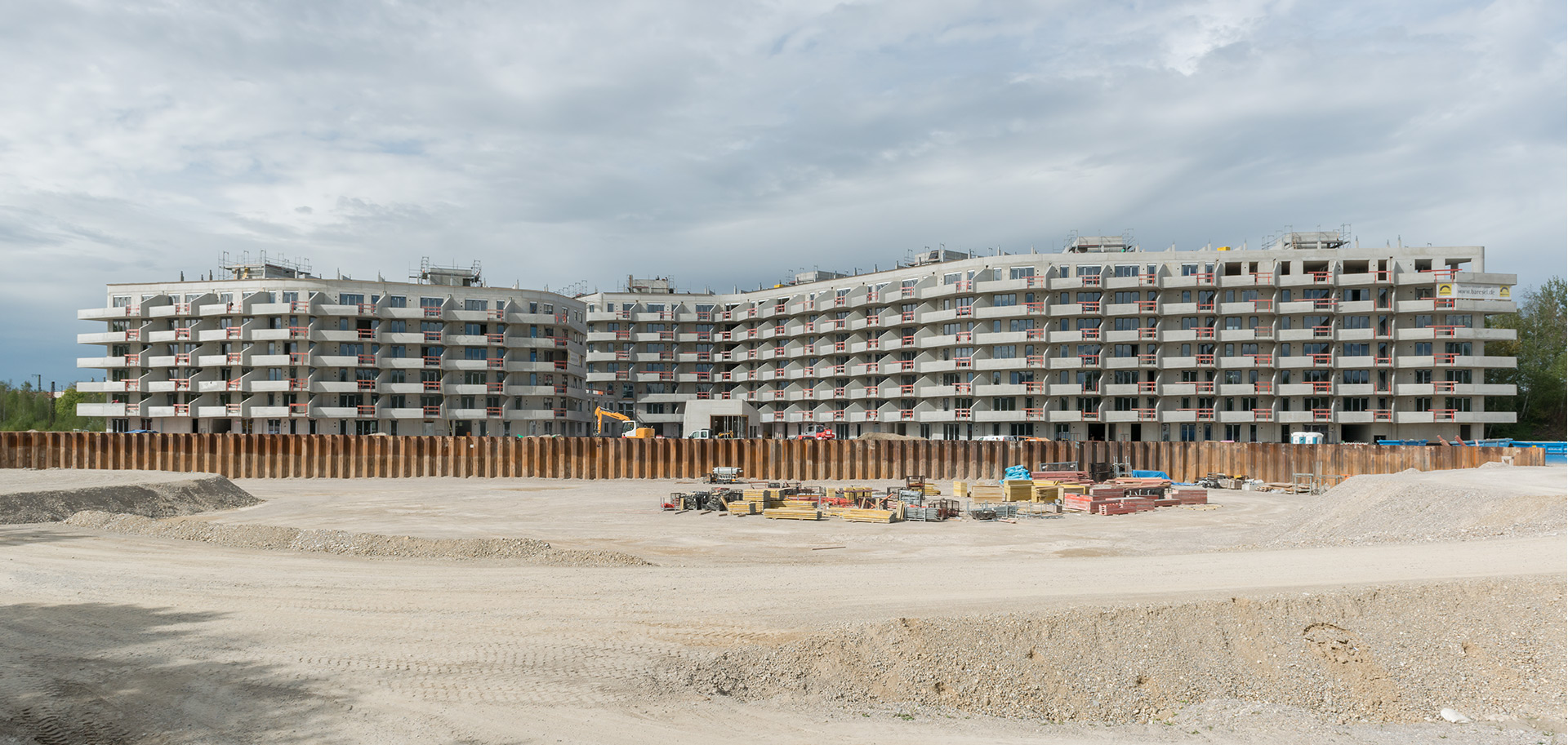 Wohnanlage mit 170 Wohneinheiten und zweigeschossiger Tiefgarage in Stahlbetonbauweise